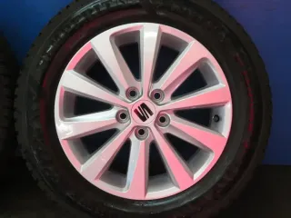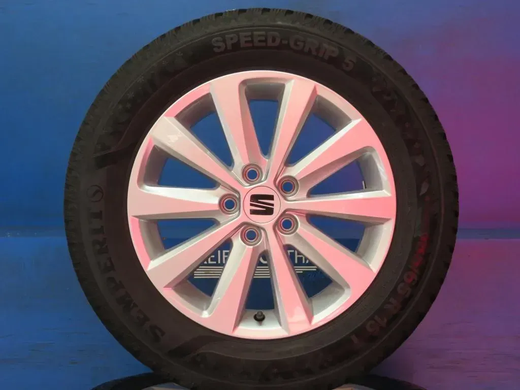 Original Seat Ibiza V Typ KJ 15 Zoll 10-Speichen-Felge Winterräder 6F0601025G Silber Winterreifen 2x 7 mm / 2x 7,8 mm gebraucht
