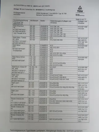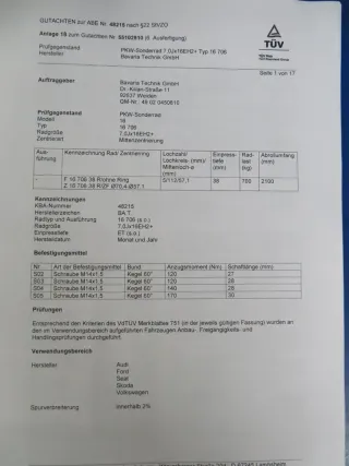 Die Anwendungsliste ist nicht verbindlich, daher empfehlen wir zu prüfen, ob der Radsatz für Ihr Fahrzeug geeignet ist.