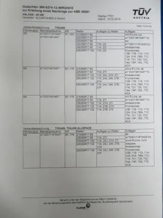 Skoda Kodiaq I, VW Tiguan II, VW Tiguan Allspace, Seat TarracoFahrzeugliste: