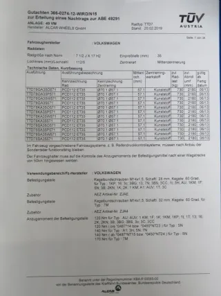 Die Anwendungsliste ist nicht verbindlich, daher empfehlen wir zu prüfen, ob der Radsatz für Ihr Fahrzeug geeignet ist.