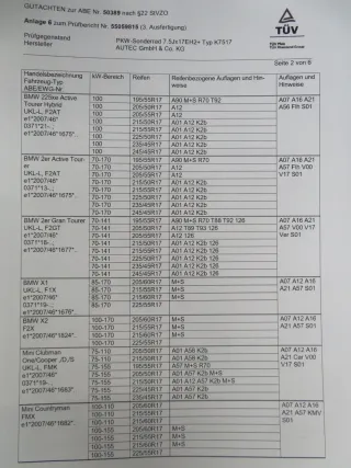 * (BMW Sternmarkierung)Reifenspezifikation: