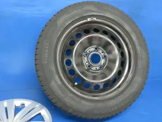 Original VW Touran II 16 Zoll Stahlrad Winterräder 5QA601027.... Schwarz Winterreifen Pirelli 2x 6,8 mm / 2x 7,2 mm